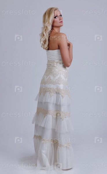 Красивая молодая невеста в свадебном платье в стиле ретро