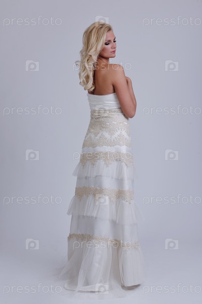 Красивая молодая невеста в свадебном платье в стиле ретро