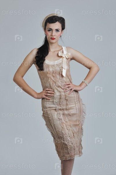 Красивая молодая женщина в красивом платье в стиле ретро