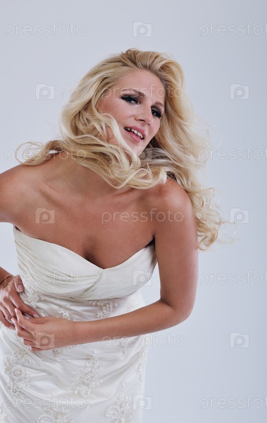 Красивая молодая невеста в свадебном платье в стиле ретро