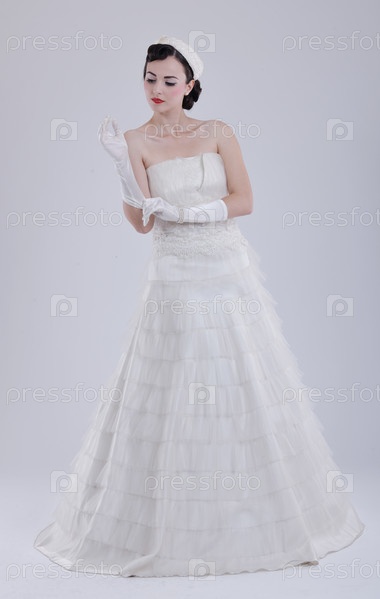 Красивая молодая невеста в свадебном платье в стиле ретро