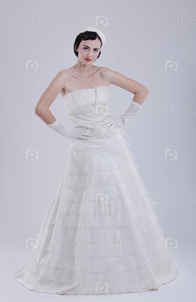 Красивая молодая невеста в свадебном платье в стиле ретро