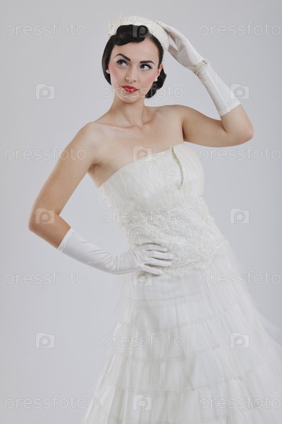 Красивая молодая невеста в свадебном платье в стиле ретро