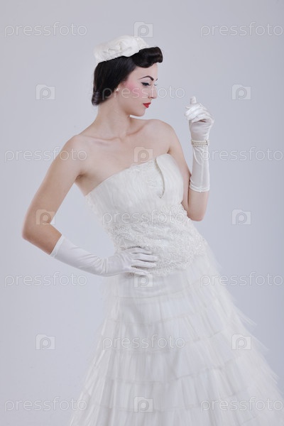 Красивая молодая невеста в свадебном платье в стиле ретро