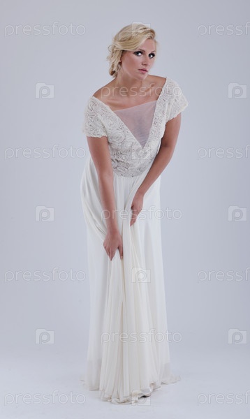 Красивая молодая невеста в свадебном платье в стиле ретро