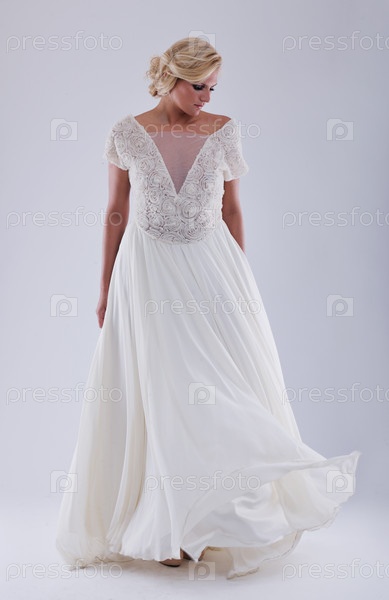 Красивая молодая невеста в свадебном платье в стиле ретро
