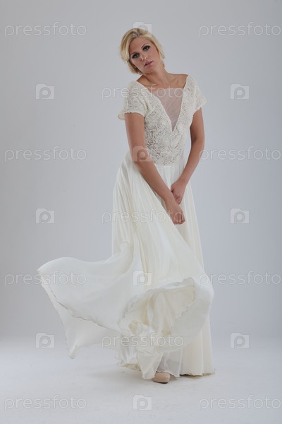 Красивая молодая невеста в свадебном платье в стиле ретро