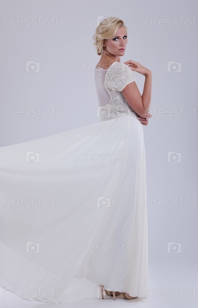 Красивая молодая невеста в свадебном платье в стиле ретро