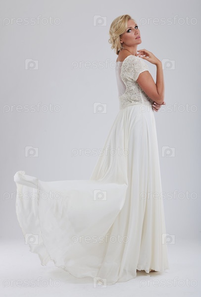 Красивая молодая невеста в свадебном платье в стиле ретро