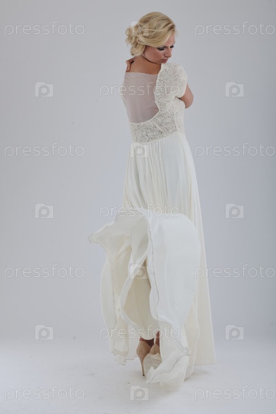 Красивая молодая невеста в свадебном платье в стиле ретро