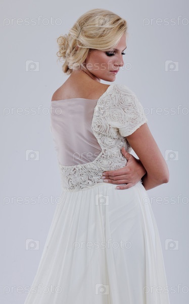 Красивая молодая невеста в свадебном платье в стиле ретро