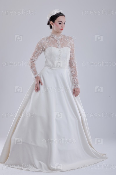 Красивая молодая невеста в свадебном платье в стиле ретро
