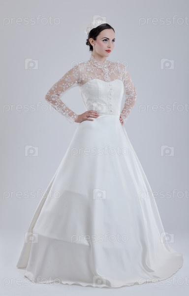 Красивая молодая невеста в свадебном платье в стиле ретро
