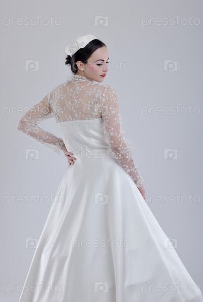 Красивая молодая невеста в свадебном платье в стиле ретро