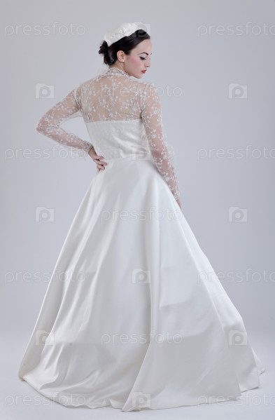 Красивая молодая невеста в свадебном платье в стиле ретро