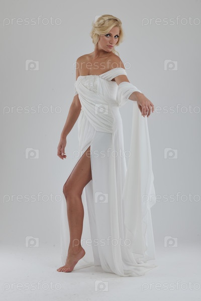 Красивая молодая невеста в свадебном платье в стиле ретро