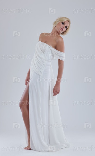 Красивая молодая невеста в свадебном платье в стиле ретро