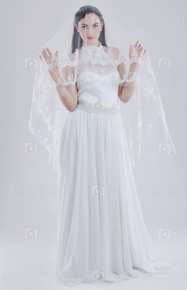 Красивая молодая невеста в свадебном платье в стиле ретро