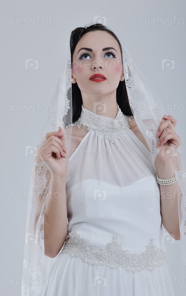 Красивая молодая невеста в свадебном платье в стиле ретро