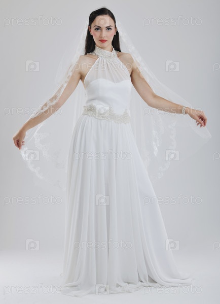 Красивая молодая невеста в свадебном платье в стиле ретро