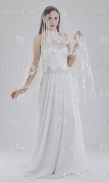 Красивая молодая невеста в свадебном платье в стиле ретро