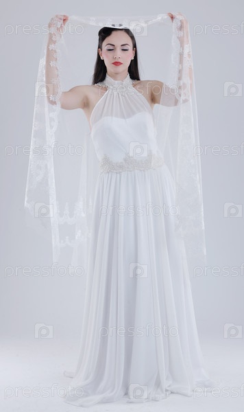 Красивая молодая невеста в свадебном платье в стиле ретро