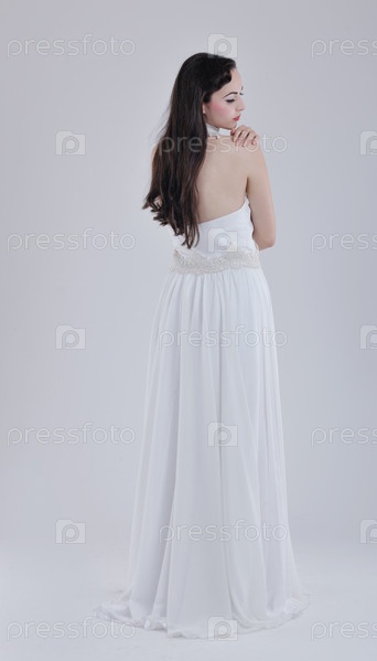 Красивая молодая невеста в свадебном платье в стиле ретро