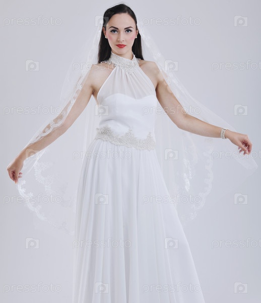 Красивая молодая невеста в свадебном платье в стиле ретро