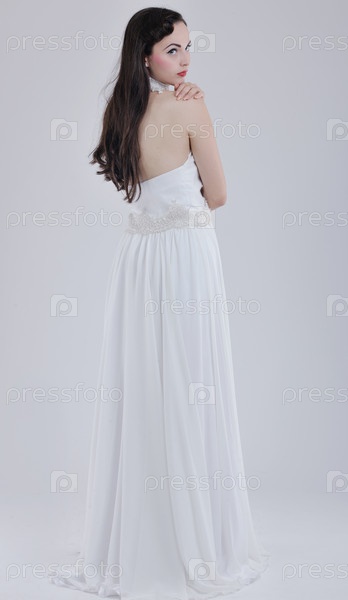 Красивая молодая невеста в свадебном платье в стиле ретро
