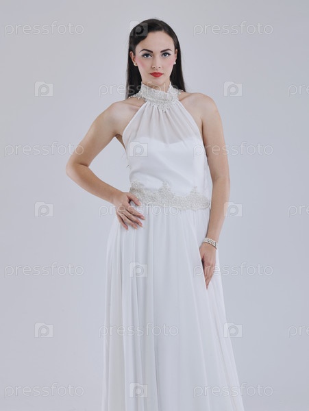 Красивая молодая невеста в свадебном платье в стиле ретро