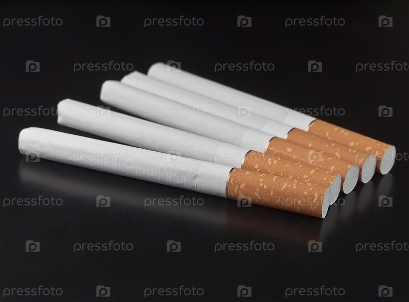 Сигареты с фильтром на черном фоне