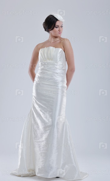 Красивая молодая невеста в свадебном платье в стиле ретро