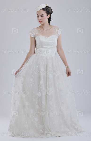 Красивая молодая невеста в свадебном платье в стиле ретро