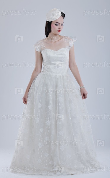 Красивая молодая невеста в свадебном платье в стиле ретро