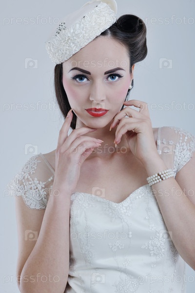 Красивая молодая невеста в свадебном платье в стиле ретро