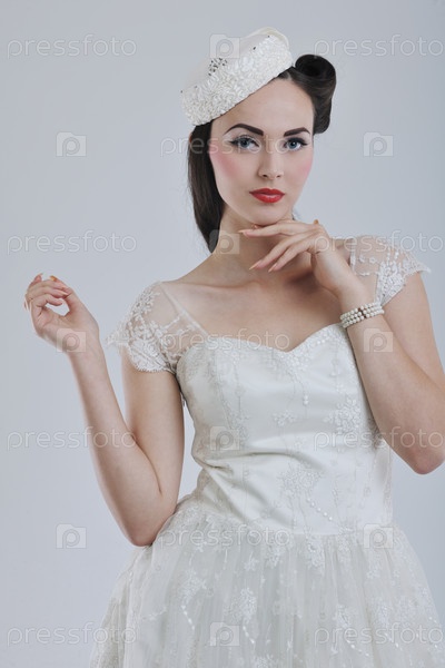 Красивая молодая невеста в свадебном платье в стиле ретро