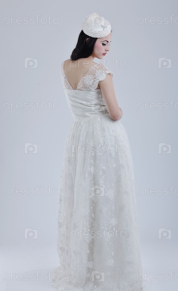 Красивая молодая невеста в свадебном платье в стиле ретро