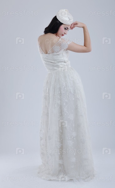 Красивая молодая невеста в свадебном платье в стиле ретро