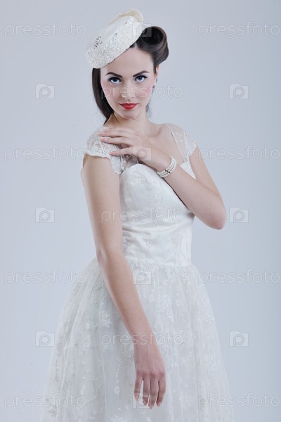 Красивая молодая невеста в свадебном платье в стиле ретро