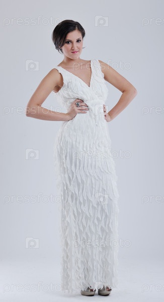 Красивая молодая невеста в свадебном платье в стиле ретро