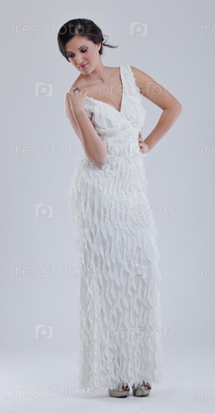 Красивая молодая невеста в свадебном платье в стиле ретро