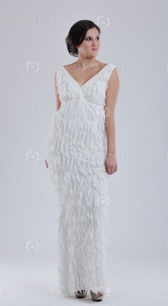 Красивая молодая невеста в свадебном платье в стиле ретро