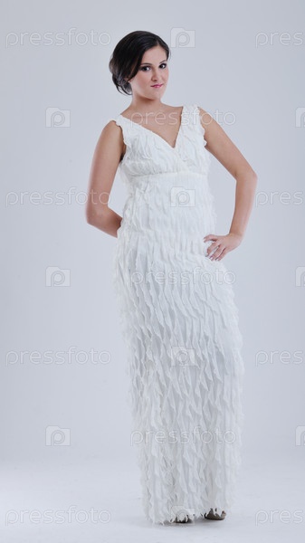 Красивая молодая невеста в свадебном платье в стиле ретро