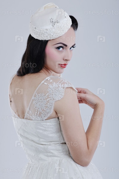 Красивая молодая невеста в свадебном платье в стиле ретро