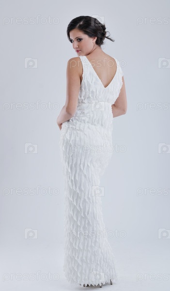 Красивая молодая невеста в свадебном платье в стиле ретро