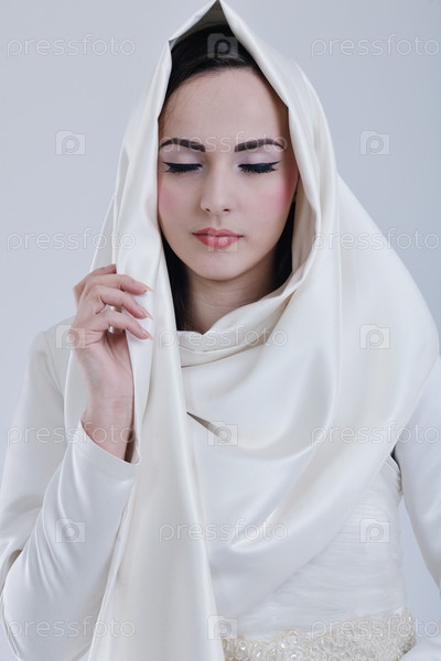 Красивая молодая невеста в свадебном платье в стиле ретро