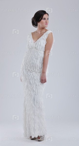 Красивая молодая невеста в свадебном платье в стиле ретро