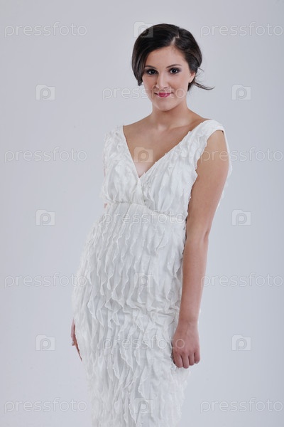 Красивая молодая невеста в свадебном платье в стиле ретро