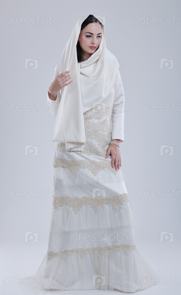 Красивая молодая невеста в свадебном платье в стиле ретро
