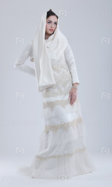 Красивая молодая невеста в свадебном платье в стиле ретро
